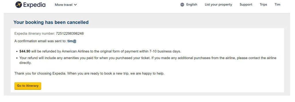Expedia flight cancellation and refund information.